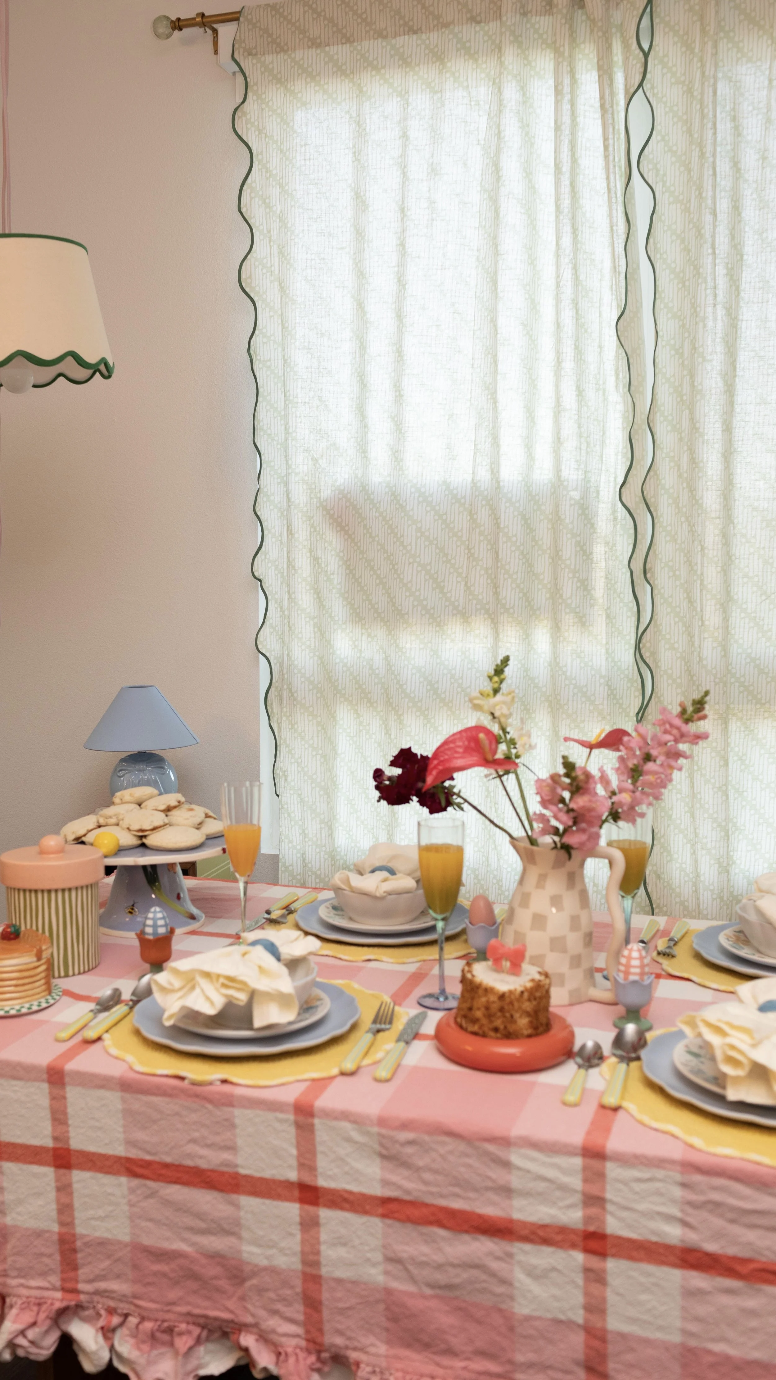 Pink Ruffled Gingham Tablecloth